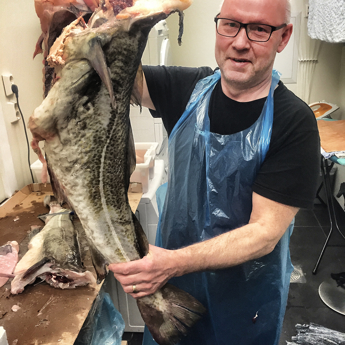 Stein-Erik trägt eine Jeans, einen grauen Pullover und eine schwarze Brille, als er aus seinem Auto steigt. Es schneit. „Ich komme gerade vom Flughafen Tromsö, wo ich eine Schweizer Gruppe abgeholt habe. Sie reisen schon seit vielen Jahren für ihre Skitouren hierher“, erzählt er mit sanfter Stimme. Seine rote Daunenjacke hängt er über den schwarzen Ledersessel. Wir setzen uns an seinen Schreibtisch. Bis Mitte Mai zieht es Skitouren-Geher nach Lyngseidet nahe dem Polarkreis, bis Ende September Fischer. Wandern ist im Sommer ohnehin beliebt, aber ein Magnet mit schier unendlicher Anziehungskraft sind die Nordlichter des Winters. Die Gegend um Tromsö haben viele für sich entdeckt, überlaufen ist hier dennoch nichts. „Leider habe ich selbst zu wenig Zeit für alles, was uns Lyngseidet bietet“, verrät mir Stein-Erik. „Aber manchmal gehe ich mit meinen Gästen fischen. Hast du heute etwas gefangen?“, fragt er mich. Ich zeige ihm die Bilder unseres Fangs. „Dorsch? Gratuliere!“, freut er sich. Nach unserer Skitour waren wir mit dem Boot knapp 2 Stunden am Fjord. Fürs Abendessen hat´s gereicht.